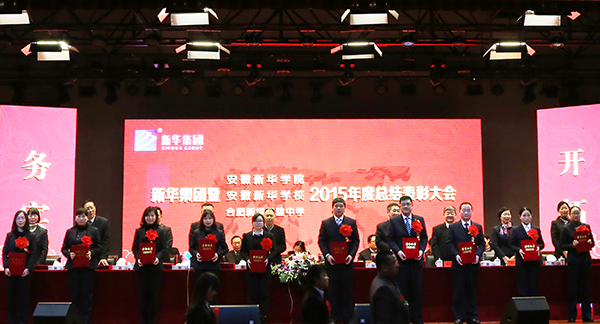 1月20日上午,新華集團(tuán)暨安徽新華學(xué)院、安徽新華學(xué)校、合肥新華實驗中學(xué)2015年度工作總結(jié)表彰大會在安徽新華學(xué)院大禮堂隆重召開。集團(tuán)、學(xué)校領(lǐng)導(dǎo)出席大會,與全體教職員工共同回顧了2015年的工作,并明確了2016年的工作要點與發(fā)展方向,同時還對2015年度先進(jìn)個人進(jìn)行了表彰。大會由新華集團(tuán)副總裁、安徽新華學(xué)院副董事長王孝武主持。