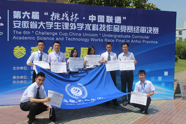 6月4日至6日,由共青團安徽省委員會、安徽省教育廳、安徽科學(xué)技術(shù)協(xié)會、安徽省學(xué)生聯(lián)合會共同主辦的第六屆“挑戰(zhàn)杯”安徽省大學(xué)生課外學(xué)術(shù)科技作品競賽終審決賽在安徽大學(xué)舉行,經(jīng)過激烈角逐,動漫學(xué)院袁磊、馮灀、邢慧、阮從芳四位同學(xué)的作品《安徽省動漫產(chǎn)業(yè)發(fā)展問題調(diào)查及研究對策》,土木與環(huán)境工程學(xué)院劉斌、周西好、石利軍、朱琳、張志剛五位同學(xué)的作品《基于漸縮型導(dǎo)流槽的汽車后視鏡雨眉系統(tǒng)》榮獲二等獎;商學(xué)院張玉倩、丁夢爽、陳皖皖三位同學(xué)的作品《應(yīng)用型高校大學(xué)生兼職調(diào)查報告:基于應(yīng)用型人才的培養(yǎng)》,土木與環(huán)境工程學(xué)院房晴雨、曹路、嚴(yán)小丹、鄭敏、夏良辰五位同學(xué)的作品《公租房項目采用住宅產(chǎn)業(yè)化模式的技術(shù)經(jīng)濟分析》,文化與新聞傳播學(xué)院錢芳、陶海燕、陳小婷三位同學(xué)的作品《從傳播視角論新媒體對當(dāng)代大學(xué)生創(chuàng)新素質(zhì)的影響》,藥學(xué)院汪云霞、陸王明、呂來虎三位同學(xué)的作品《過碳酰胺種子包衣劑的配制及包衣研究》獲得三等獎。本次大賽獲獎的數(shù)量和級別均創(chuàng)歷史最好成績。