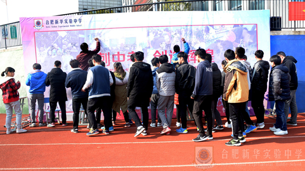會后九年級全體師生在簽名墻上簽字