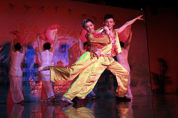 本次“鼓鄉(xiāng)情韻”高雅藝術(shù)進(jìn)校園活動(dòng)由安徽省教育廳主辦,安徽新華學(xué)院承辦。滁州學(xué)院花鼓藝術(shù)團(tuán)的藝術(shù)家們?yōu)榘不招氯A學(xué)院師生帶來了一場精彩絕倫的視聽盛宴,不僅讓廣大師生零距離感受到了鳳陽花鼓的獨(dú)特藝術(shù)魅力,更豐富了學(xué)生的精神生活,營造出和諧的校園文化氣氛。
